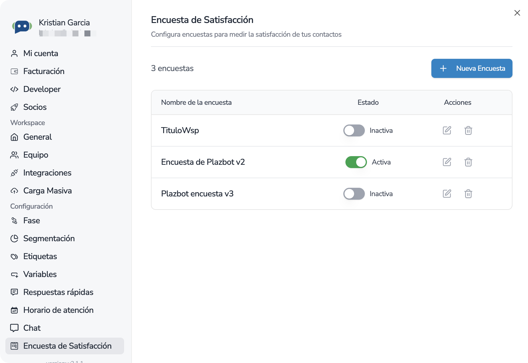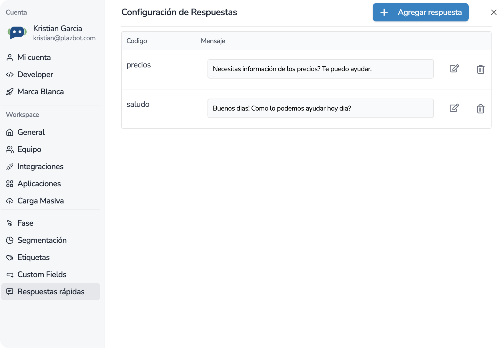 👉 Se paso a producción el canal de Instagram aumentando uno de los canales principales de Plazbot.👉 Se agrego una funcionalidad a la vista para que pueda crearse en modo Privado y colocarse público. Esta funcionalidad solo acepta cambios del usuario que la ha creado.👉 Se agrego funcionalidad para poder contar con mas de un número de Whatsapp en un Workspace, solucionando asi una de las principales desventajas de Plazbot 1.0