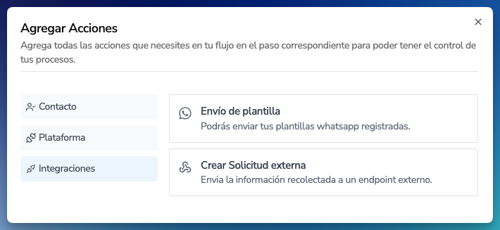 - Integración con ElevenLabs (Text to Speech): Con nuestra integración con ElevenLabs puedes hacer que tus agentes contesten por medio de audio a los clientes, entregan una mejor experiencia.
