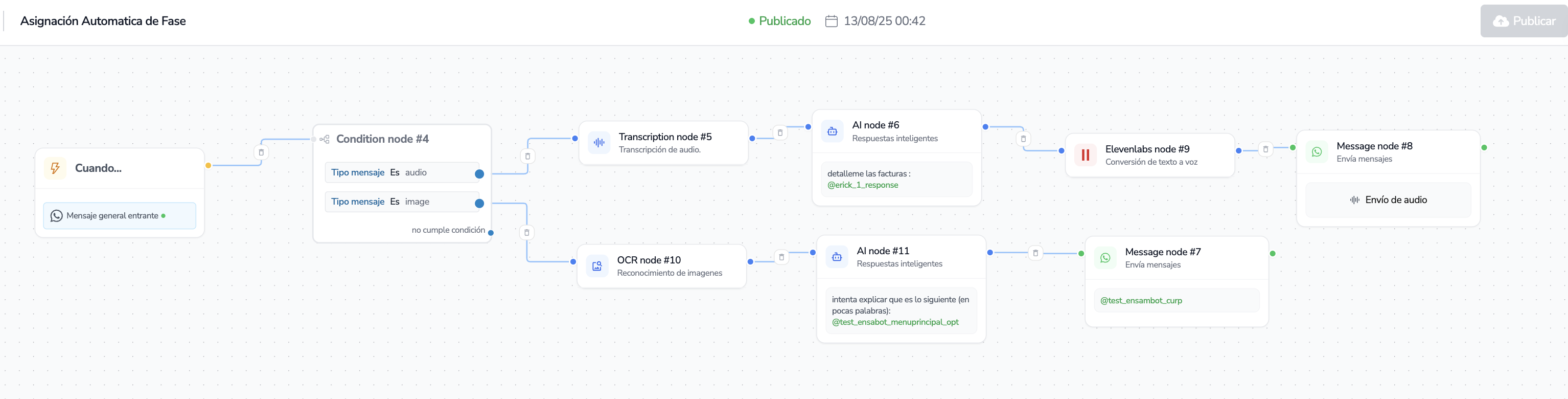 - Transcripcion de Audios de Voz (Speech to Text): Con el nuevo nodo de transcripcion se podrá entender el mensaje del cliente, pasarlo a texto y poder pasarlo al agente de IA o usarlo en otras funcionalidades.
