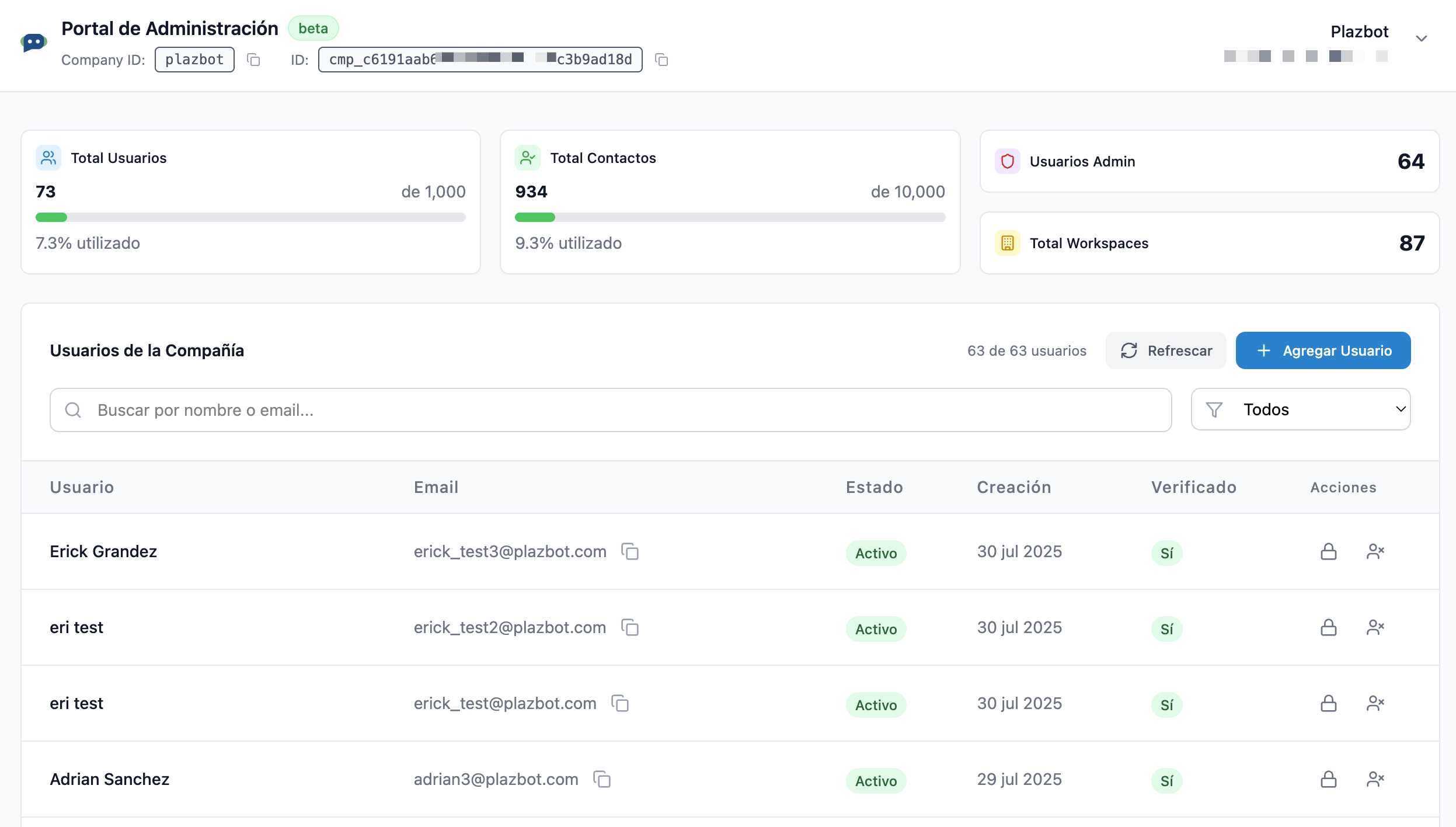 - Usuarios: Gestiona tus usuarios de la plataforma.