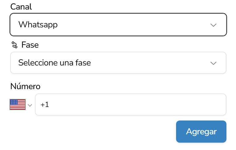 Los contactos que llegan a la plataforma de los diferentes canales que se puedan configurar, se agregarán de forma automática a la plataforma y se podrá visualizar el mensaje que llega para que pueda ser atendido ya sea por el Agente de IA o el Agente Humano configurado en la plataforma. También se puede agregar un contacto de forma manual, presionando el botón de Agregar Contacto donde saldrá una pantalla para ingresar la información.