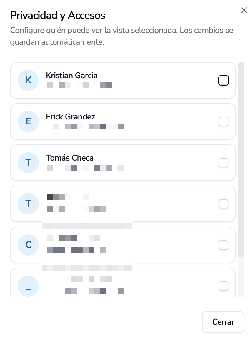 Luego tambien en la pantalla de vistas, cada vez que se crea una vista, se puede configurar quien puede ver la vista y quien no la puede ver.