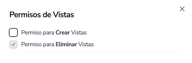 en la siguiente pantalla se puede configurar los permisos de las vistas de los contactos. Estos permisos pueden ser Crear la vista y eliminar la vista.