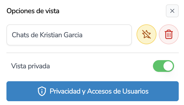 Por defecto las vistas se crean en Vistas Privadas que quiere decir que solo la persona que lo creo podrá gestionar su vista, en caso se cree en forma pública, cualquier persona del equipo podrá ver las vistas publicas. Pero solo la persona que la creo, la podrá modificar.Filtros de Vista
