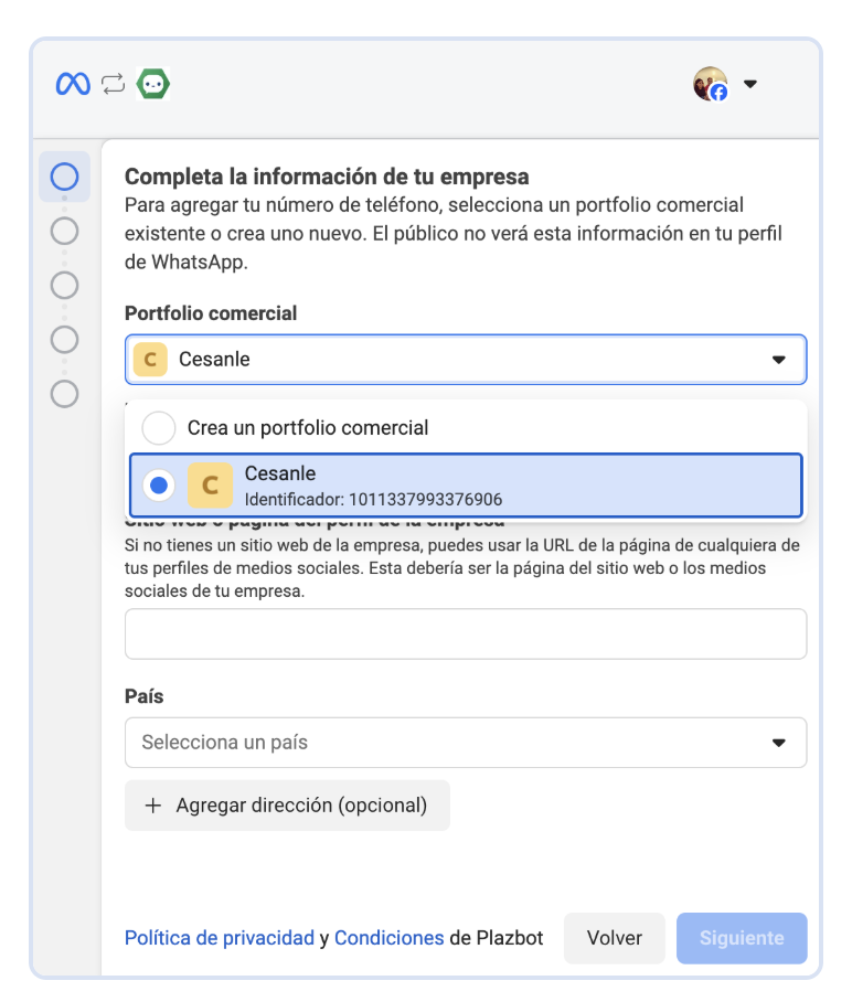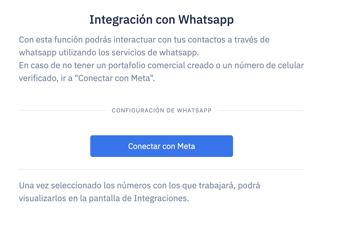 Cuando presionar el botón 1. Conectar con Meta, tienes que tener el administrador del Business Facebook de la empresa o si deseas crear un portafolio comercial.