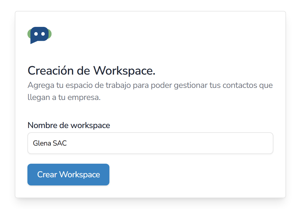 Cuando se haya validado la cuenta con el código, el sistema le pedirá poder crear el primer Workspace de la plataforma.